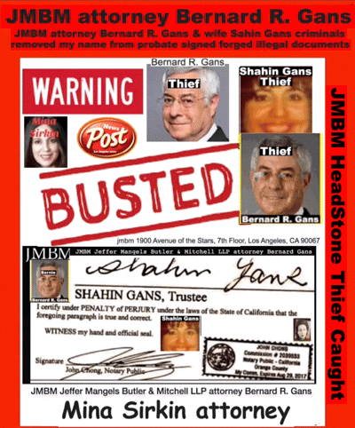 California Business Lawyers Jeffer Mangels Butler & Mitchell LLP partner Bernard gans engaging in criminal acts forging illegal documents.