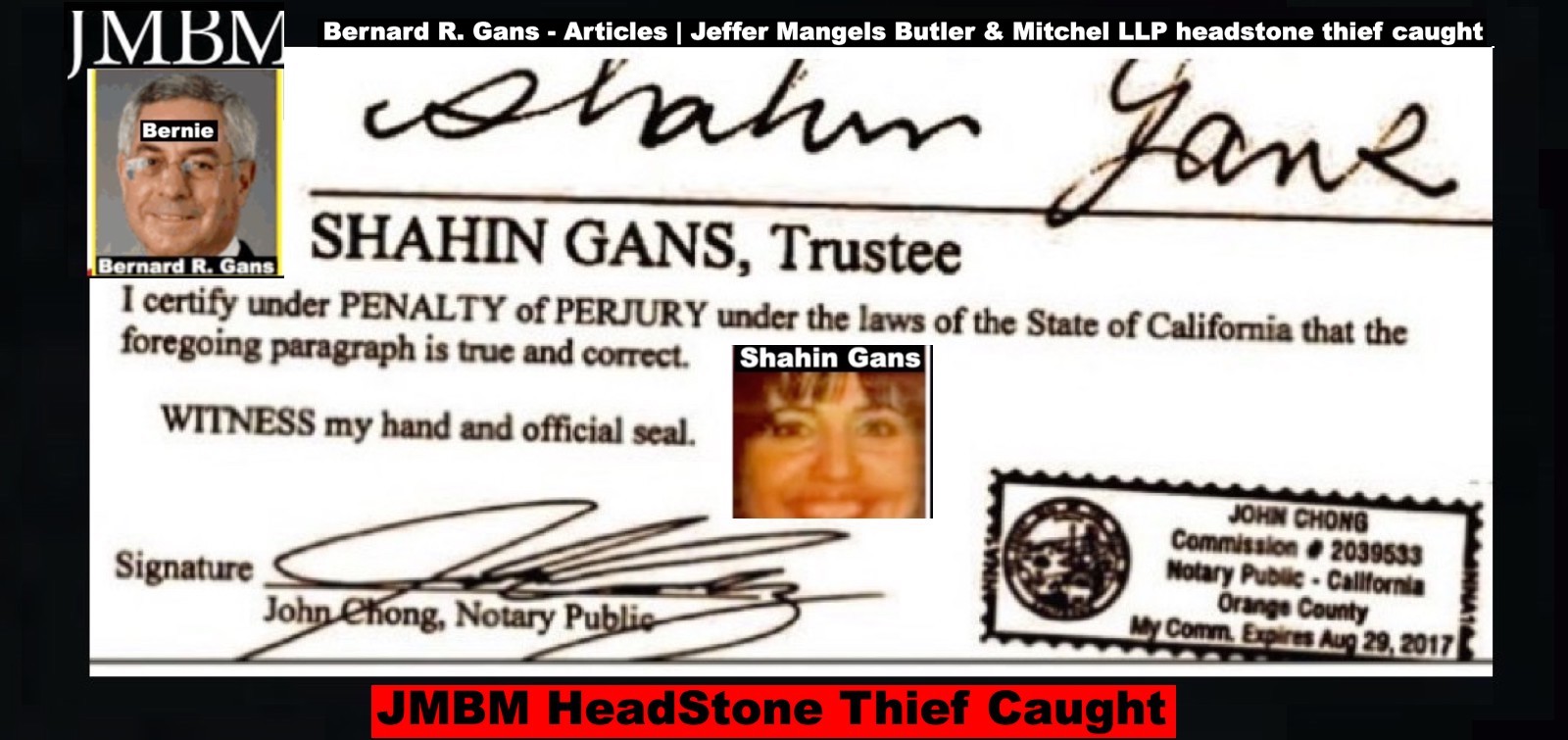 California Business Lawyers Jeffer Mangels Butler & Mitchell LLP partner Bernard gans engaging in criminal acts forging illegal documents.